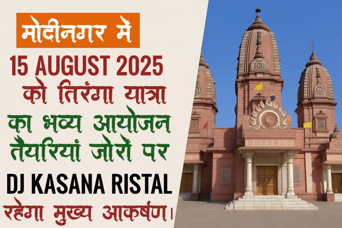 देश की आज़ादी के 78वें स्वतंत्रता दिवस को यादगार बनाने के लिए मोदीनगर में हर वर्ष की भांति एक भव्य तिरंगा यात्रा का आयोजन किया जा रहा है। इस रैली को लेकर शहरभर में तैयारियां जोरों-शोरों पर हैं और लोगों में जबरदस्त उत्साह देखने को मिल रहा है।